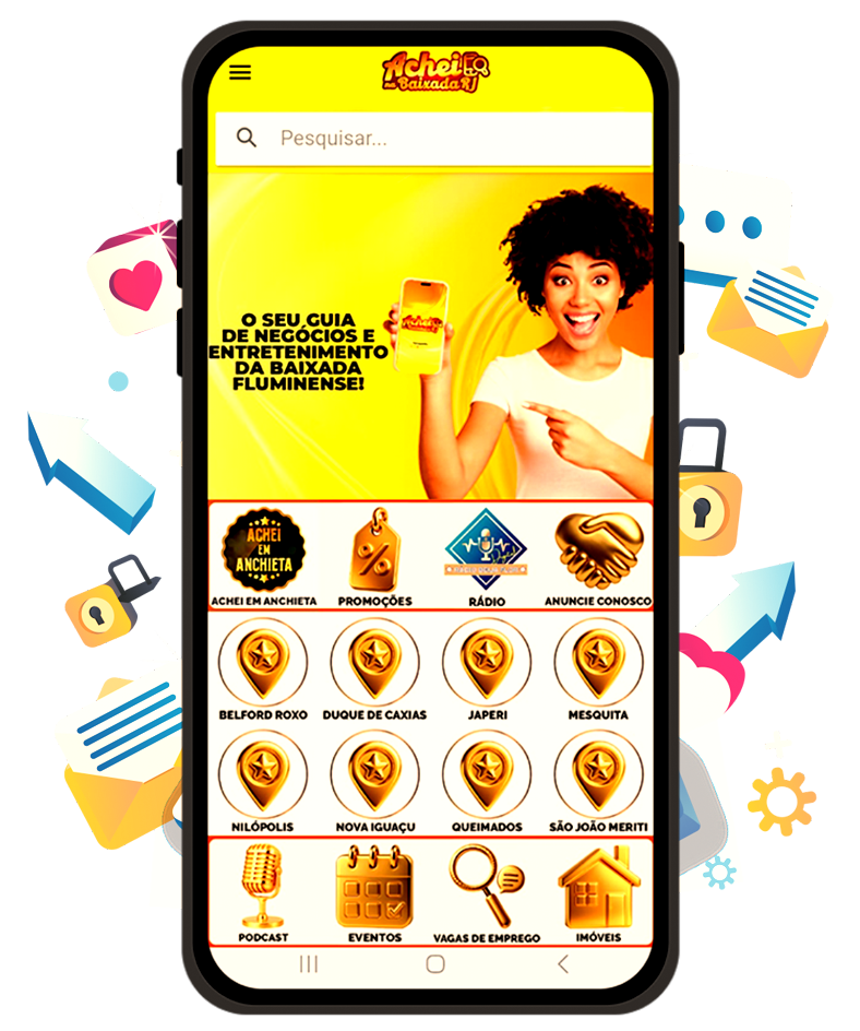 Com poucos cliques você acessa os negócios da Baixada Fluminense em um único aplicativo!